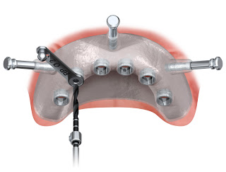 The treatment protocol involves the strategic placement of four implants: two anterior (front) implants positioned parallel to each other, and two posterior (back) implants placed at angles up to 30 degrees. This non-axial angulation of the posterior implants is key to the system's success. The biomechanical concept behind this implant arrangement is borrowed from construction engineering—specifically the Queen Post or Inverted Truss design—which maximizes support while minimizing the number of support points needed.